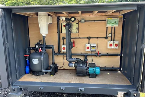 Após a instalação da piscina, será necessário enchê-la com água e um eletricista ligá-la ao painel de fusíveis do contentor. Dependendo das opções escolhidas, será necessária uma fonte de alimentação com uma capacidade de 13 kW.